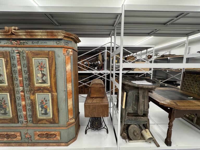 Das Museumsdepot der Stadt Bludenz hat eine turbulente Vergangenheit hinter sich. Nach mehreren Stationen in ungeeigneten Depot- und Lagerräumen befindet sich das Kulturgut der Stadt bzw. des Stadtmuseums Bludenz nun in den neuen Kellerräumlichkeiten der VS-Mitte. Mit geeigneten ausziehbaren Bilderwänden, platzsparenden Rollregalen, Planschränken für Großformatiges sowie Lastregalen für Schweres können die Objekte nun effizient und schonend gelagert werden. Als Schaudepot gedacht und konzipiert, wird durch das neue Depot eine Besichtigung der Sammlung möglich.